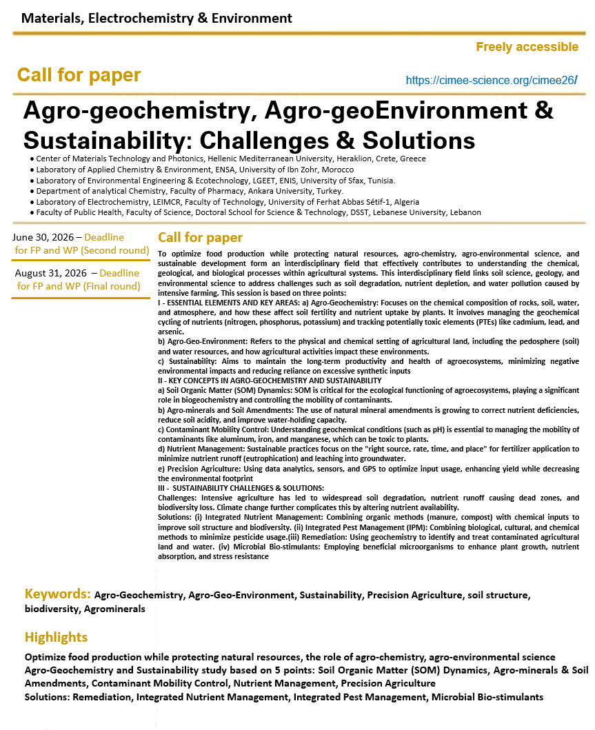 Agro-geochemistry, Agro-geoEnvironment & Sustainability: Challenges & Solutions